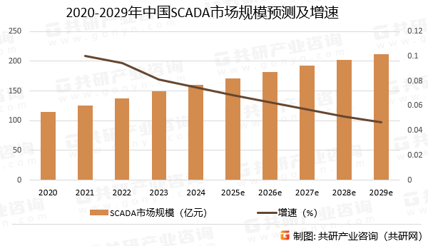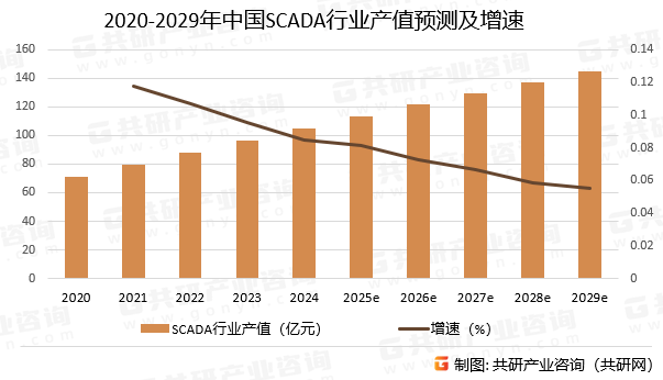 中国“新基建”政策(如5G、工业互联网、大数据中心建设)强化了数据连接能力,直接拉动智能SCADA系统在电力、交通、通信等领域的项目型市场需求。预计2029年我国SCADA行业产值将达到144.8亿元。