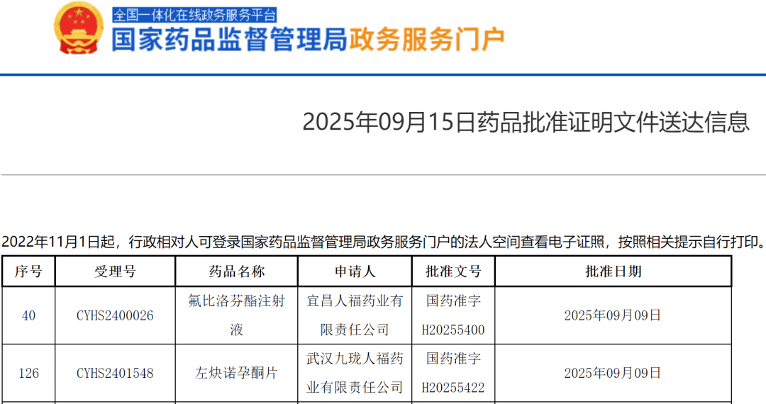 【瞩目】2个10亿大品种人福医药同日获批