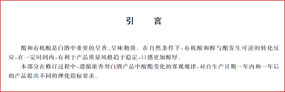增加了引言部分,对白酒在贮存期间中酸酯平衡的客观规律进行描述,反映产品的自然本质属性,有利于相关方准确理解和使用本标准。