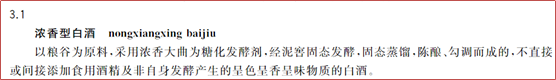 从原料、糖化发酵剂、发酵容器、工艺特征等四个方面,系统总结白酒生产工艺特征, 对包括浓香型白酒在内传统白酒的定义进行完善,丰富内容。