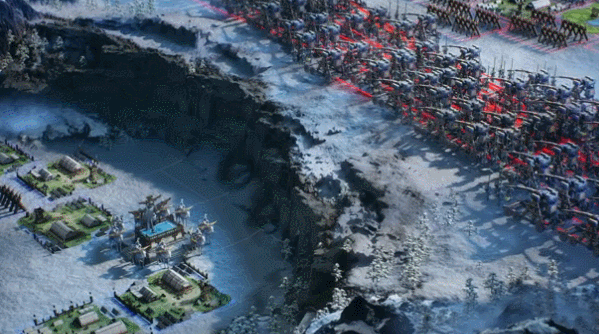 此外,“三战”的剧本设计同样充分体现了制作团队对三国的考究和还原。在《赤壁之战》剧本中引入水战玩法,地图精准还原长江流域14个港口及数十支流。游戏内斗舰、楼船等设计均参照了汉代造船工艺,船身纹饰均考据汉墓壁画;《襄樊之战》中击毁堤坝可触发“水淹樊城”,点燃易燃地块形成“火烧博望”,燃烧后土地产量骤降50%,还原了当时三国战场的天时地利的博弈;而在《潼关之战》时为验证曹操“一夜筑冰城”典故的可行性,官方团队曾以古法进行实体实验,最终筑成十米冰墙,成功复刻这一“千古奇谋”。